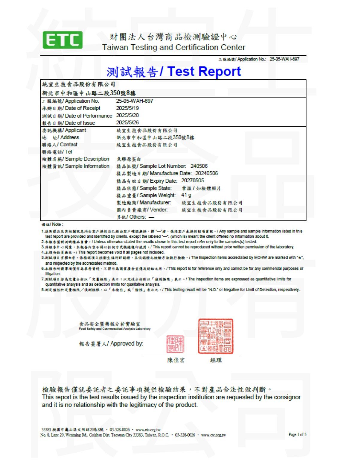 「膠原蛋白原味」檢驗報告